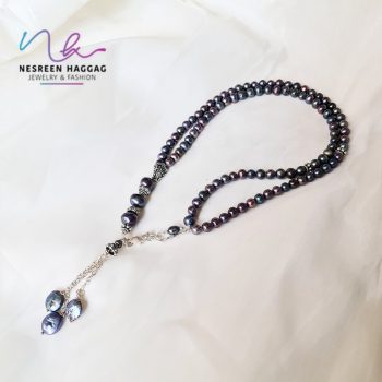 Black Pearl Rosary with Indian Silver