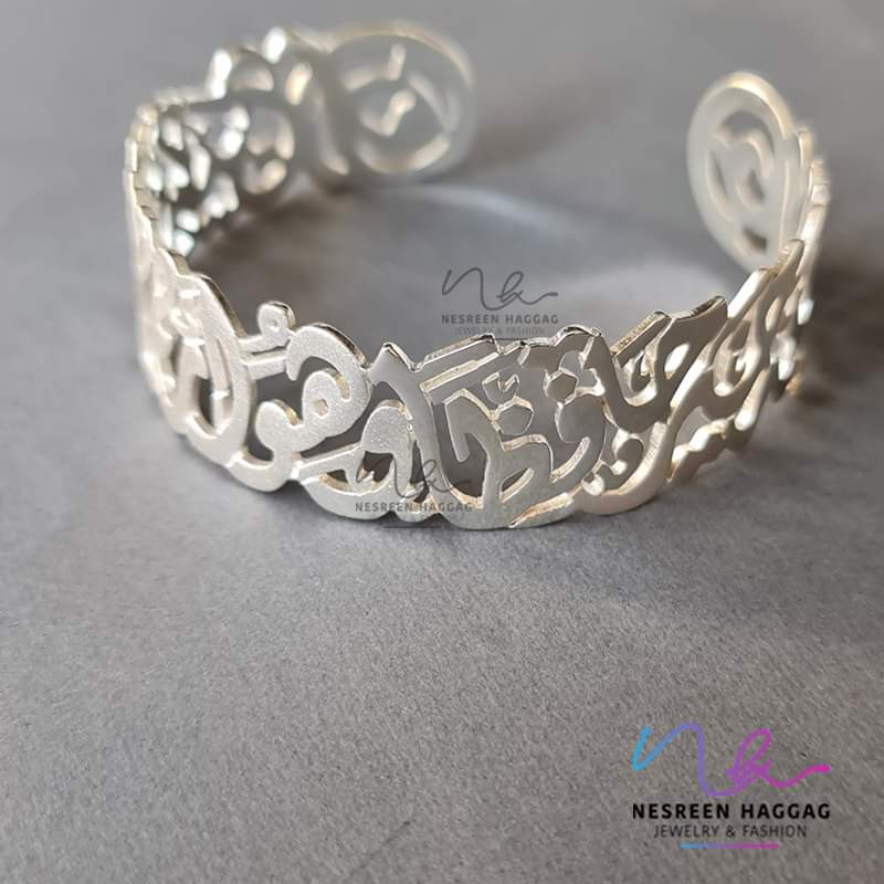 Arabian Silver Bracelet with text on it:”فالله خير حافظا”