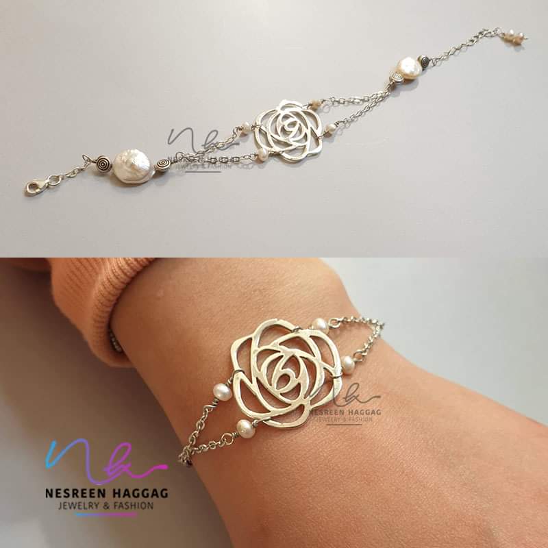 Hand made Silver and pearl bracelet with pendant “صحه”